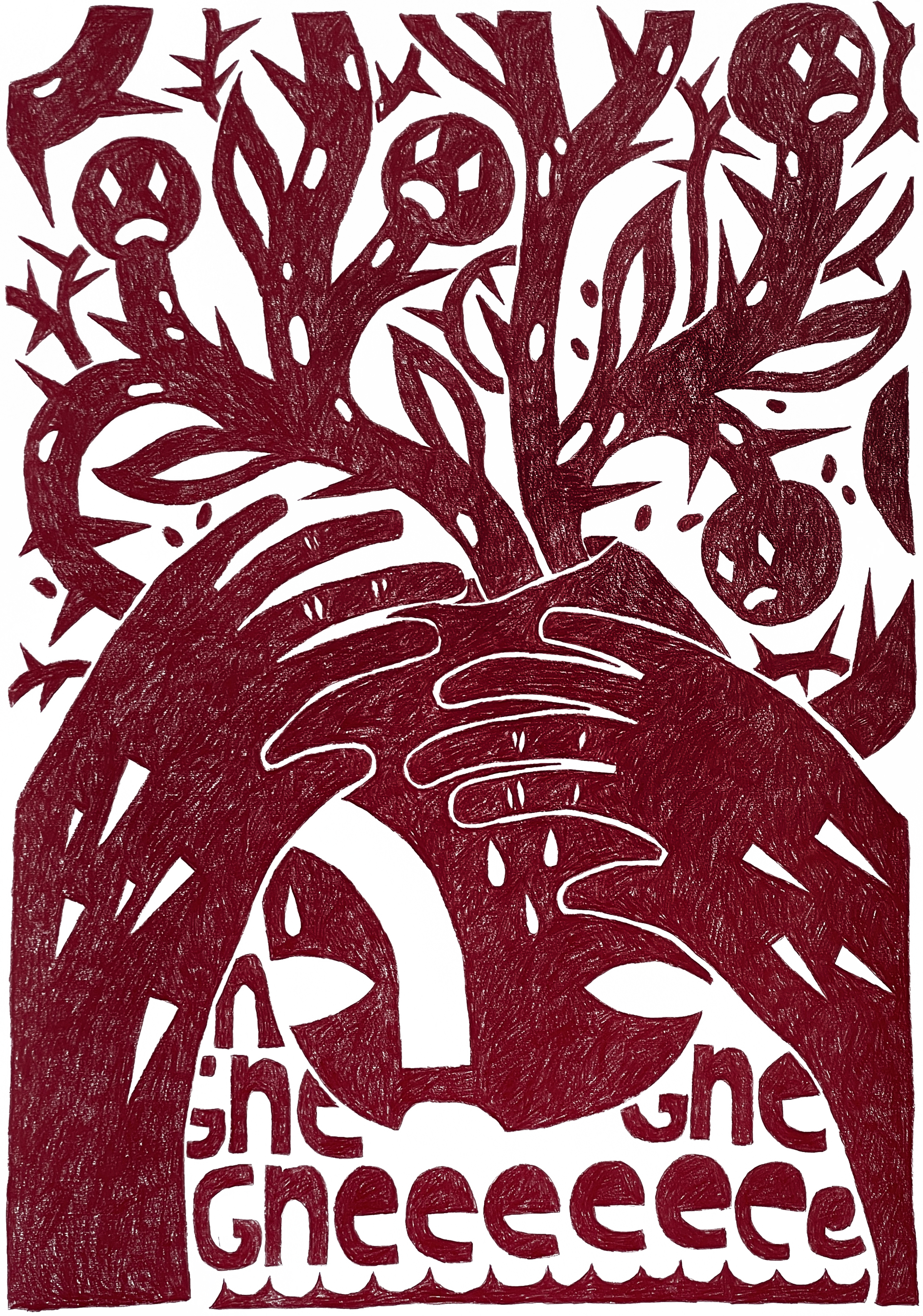 Dessins crayon de couleur 50x70 / papier découpé 1. Du bout des lèvres